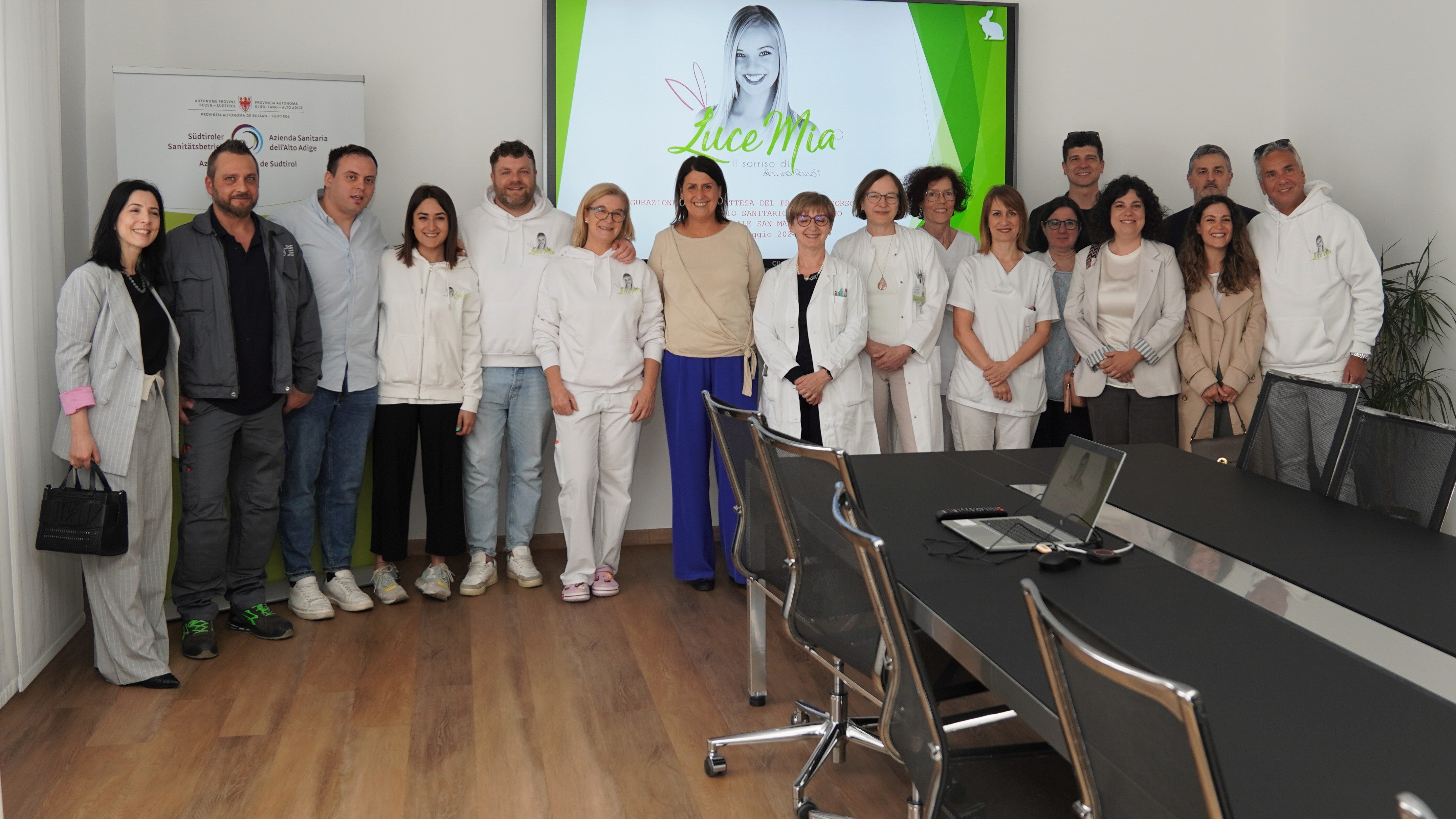Die geladenen Gäste wurden von der Bezirksdirektorin Irene Pechlaner und der Primaria der Abteilung Pädiatrie, Laura Battisti, herzlich in Empfang genommen und begrüßt. Die Einweihungsfeier und die Präsentation der Vorher-Nachher-Bilder des Warteraums erfolgte im Sitzungssaal der Bezirksverwaltung, denn der klinische Alltag der kleinen Patientinnen und Patienten sollte nicht gestört werden, so die Vereinigung „LuceMia“.