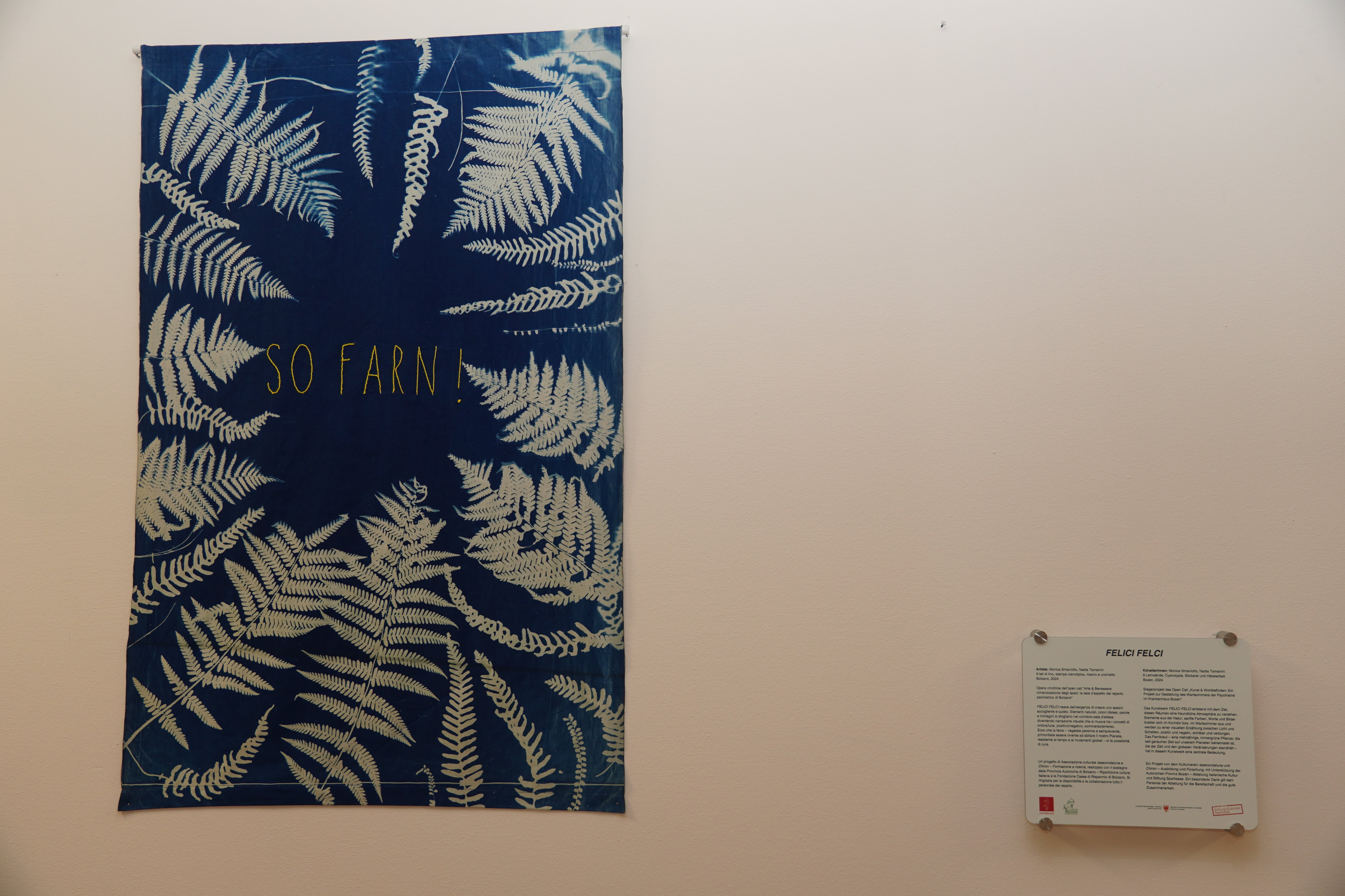 Heute (13. Juni 2024) wurde die Installation Felici Felci im Warteraum der psychiatrischen Abteilung des Landeskrankenhauses Bozen eingeweiht. Damit soll dieser Bereich freundlicher gestaltet und die Sorgen der Wartenden und Vorbeigehenden etwas verringert werden. Die Idee dabei: ein Parcours des Wohlbefindens, sowohl für das Personal als auch für die Patientinnen und Patienten und ihren Familien.
