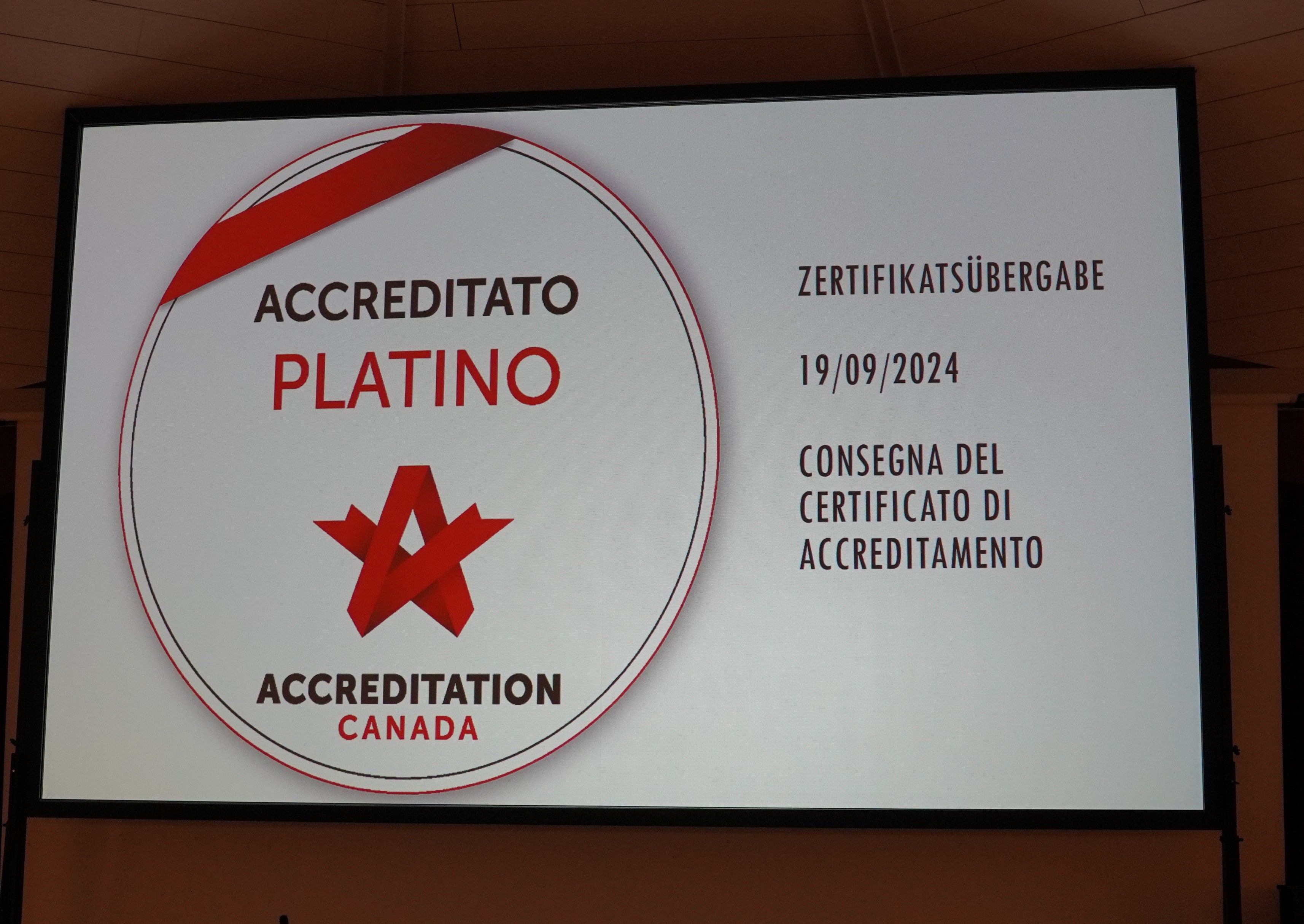 Der Abschluss und das ausgezeichnete Ergebnis waren ein guter Grund zum Feiern: Am 19. September trafen sich alle Beteiligten im Krankenhaus Bozen für die feierliche Zertifikatsübergabe durch „Accreditation Canada“.