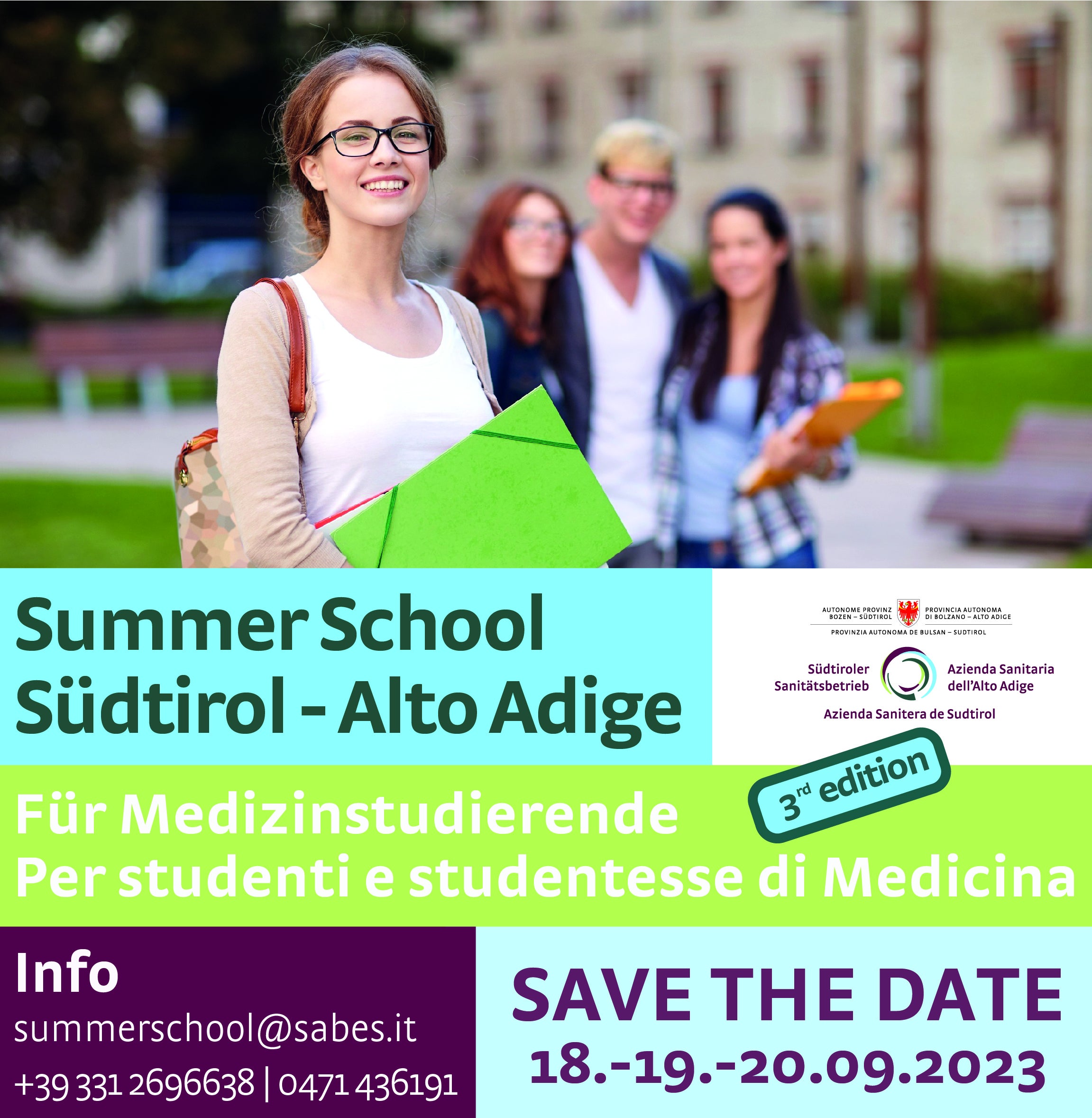 Auch dieses Jahr findet wieder die Summer School statt. Diese Weiterbildungsveranstaltung wird vom Südtiroler Sanitätsbetrieb organisiert und richtet sich an Studierende der Medizin.